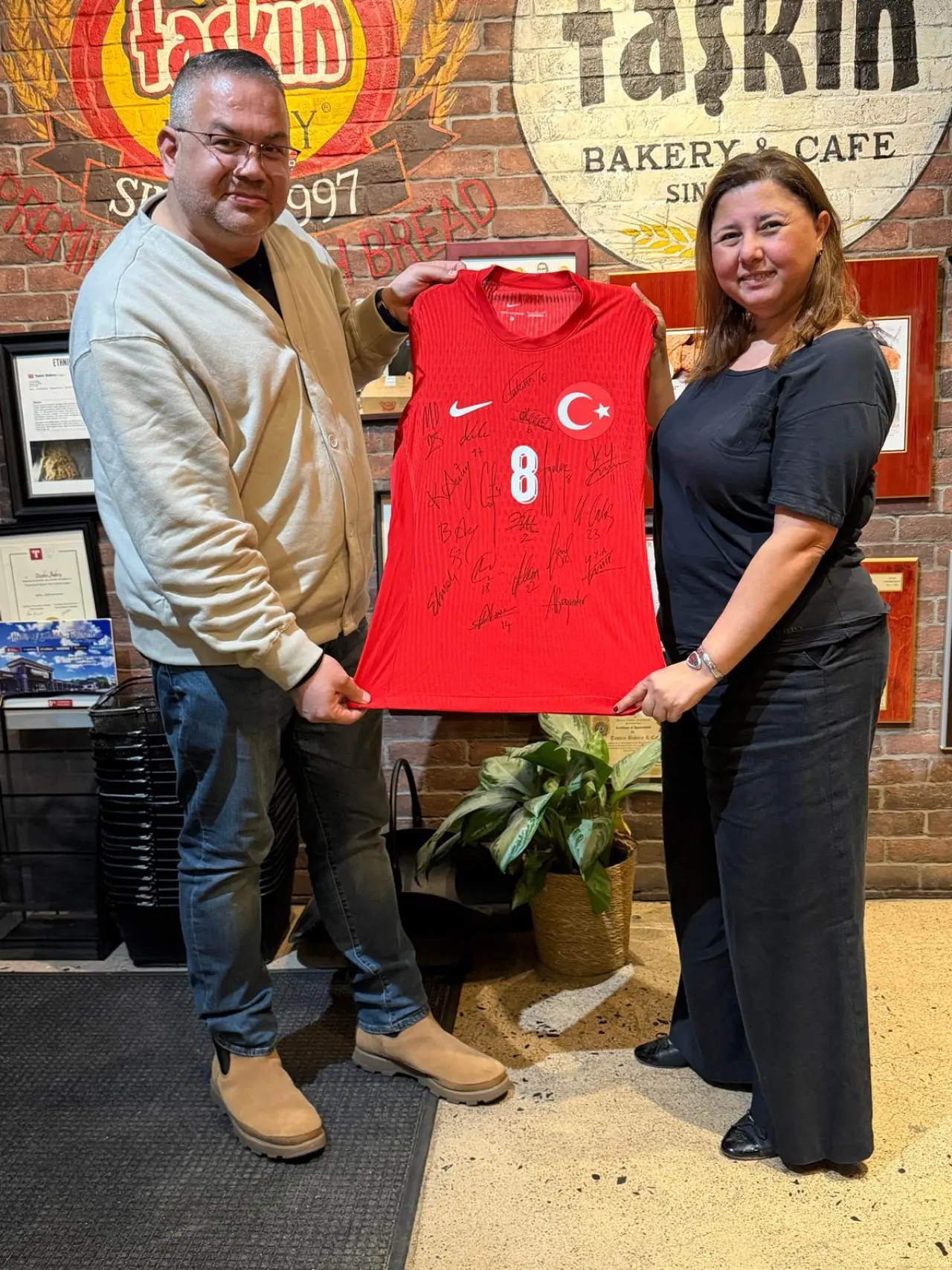 Almış olduğu forma karşısında büyük bir memnuniyetle teşekkür eden Derya Taşkın, bu hediyenin hem futbolun bir sembolü olarak, hem de Türkiye ile Amerika arasındaki sıkı bağların bir göstergesi olduğuna vurgu yaptı. Taşkın, formayı Taskin Bakery’de sergileyeceğini belirtirken, bu durumun Türk toplumuna ve gençlere verilen önemin bir örneği olduğunu ifade etti. Sözlerinin devamında, Türk futbolunun başarılarını yakından takip ettiğini ve gençlerin kariyer hedefleri için ilham kaynakları olduğunu dile getirdi.