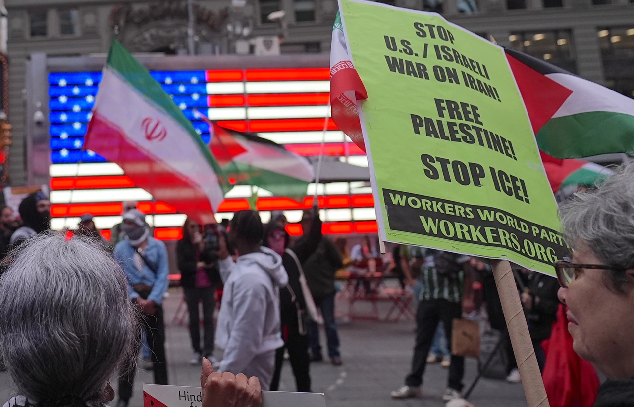 ABD’nin New York kentinde bulunan Times Meydanı, İran, Filistin ve düzensiz göçmenler için düzenlenen protesto gösterisine ev sahipliği yaptı. Ellerinde İran bayrakları ve çeşitli dövizler taşıyan kalabalık grup, bölgedeki gerginlikleri ve ABD'nin dış politikasını protesto etti.